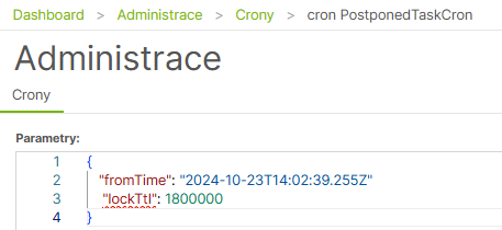 2) Přejít na PostponedTaskCron a nastavit také časovou značku. PostponedTaskCron je možné klonovat a nastavit na odbavování více úkolů viz Paralelní cron - PostponedTaskCron