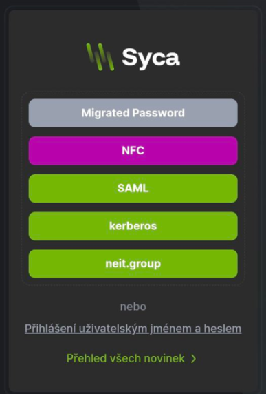 NFC Readeraktivuje čtení NFC a přiložení čipu otevře příslušný případ. - Na přihlašovací obrazovce se zobrazí výzva k přiložení NFC karty. Po přiložení proběhne automatické přihlášení dohledaného uživatele.