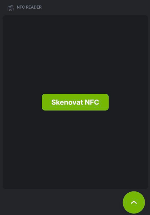 NFC Reader. - Kontejner zobrazí tlačítko — po jeho stisknutí se aktivuje čtení NFC.